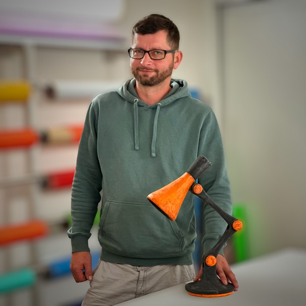 Tomáš, aranžérský mazák, mistr polepů (od aut až po letadla) a kreativní detailista. Jeho smysl pro detail se projevuje i ve vlastních výrobcích – stolních lampách s různými motivy. Jen se podívejte na jeho @franturky_lamps na Instagramu!