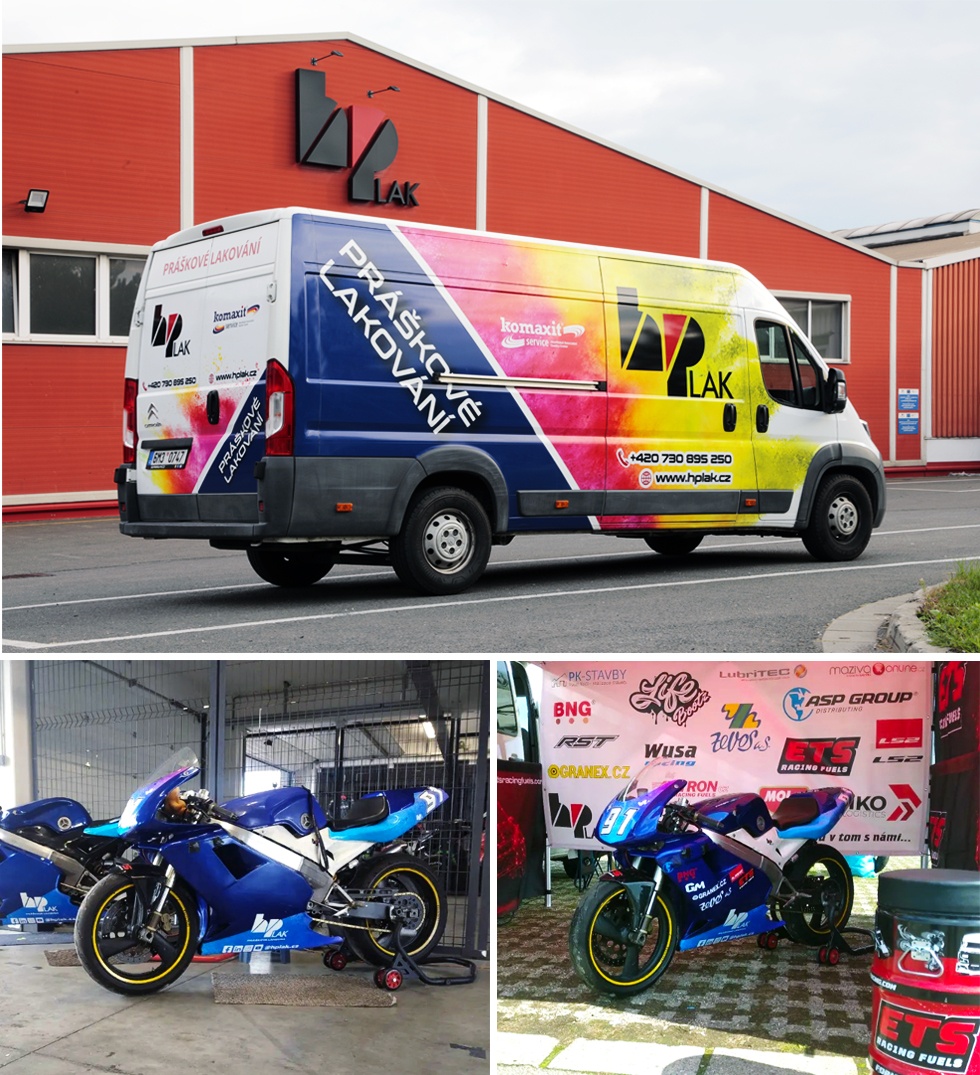 Vytvořili jsme návrh a polepy pro flotilu firemních vozidel, ale také motorky v rámci sponzoringu.