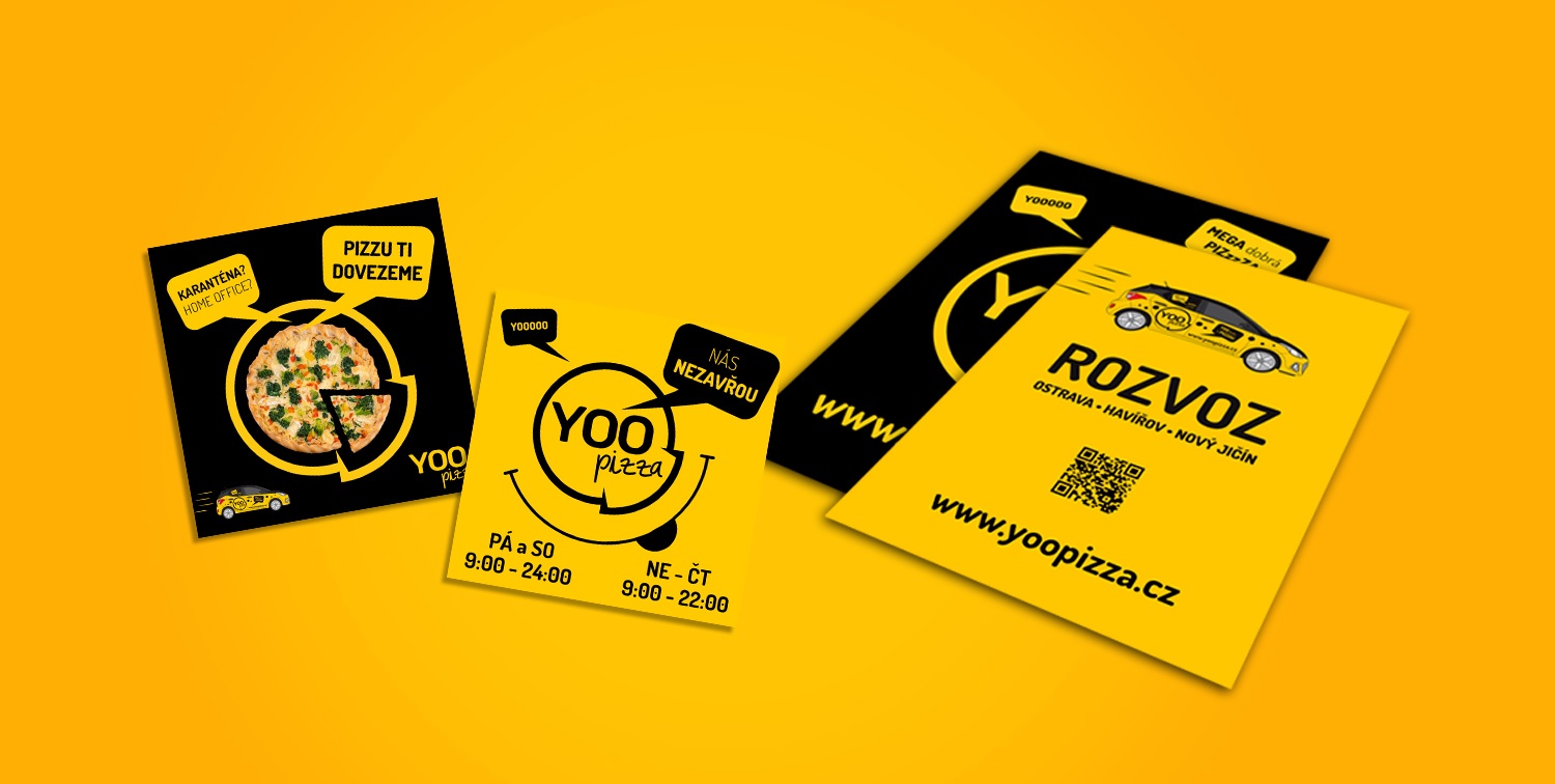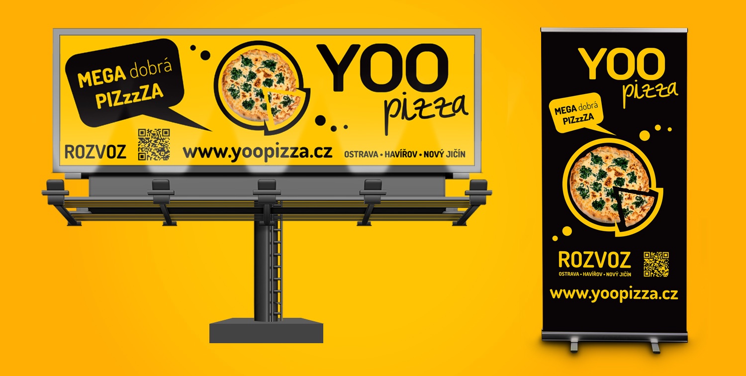 • Návrhy letáků, krabic na pizzu, roll-up bannery, billboardy, plachty